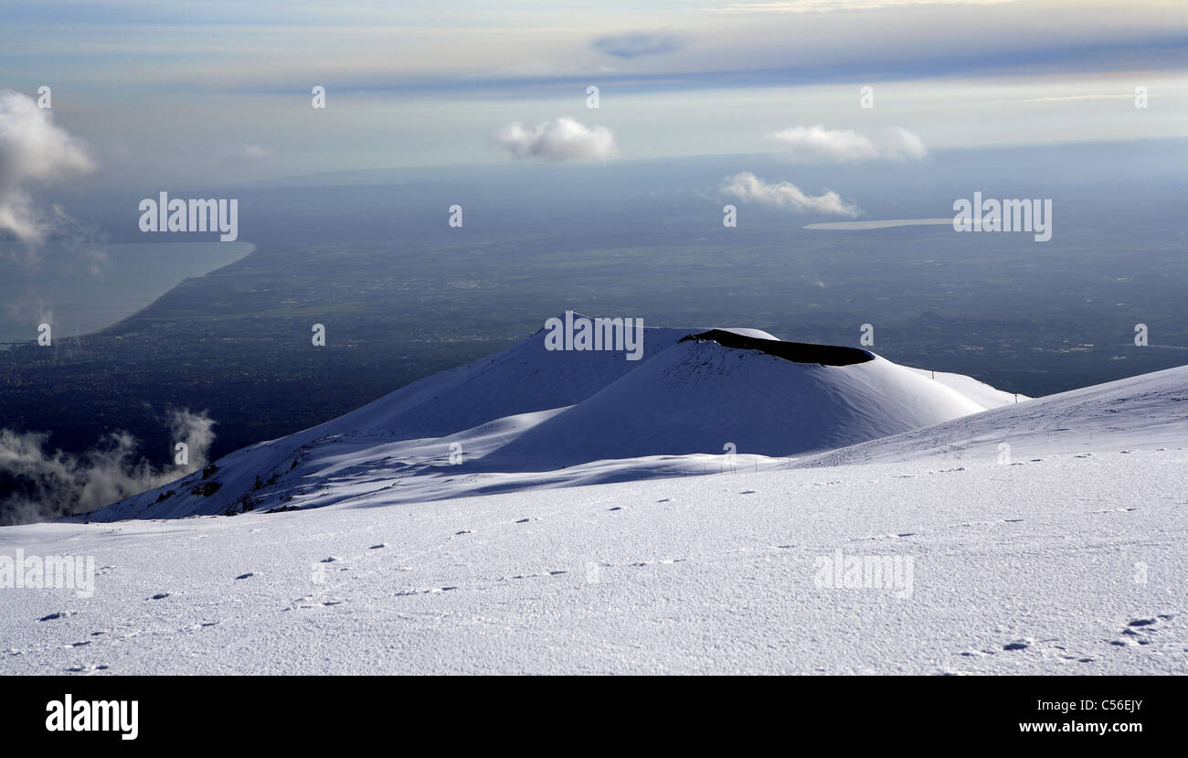 The principle components affecting the climate in Mt Etna Sicily are volcanic exercise, wind route, and altitude.